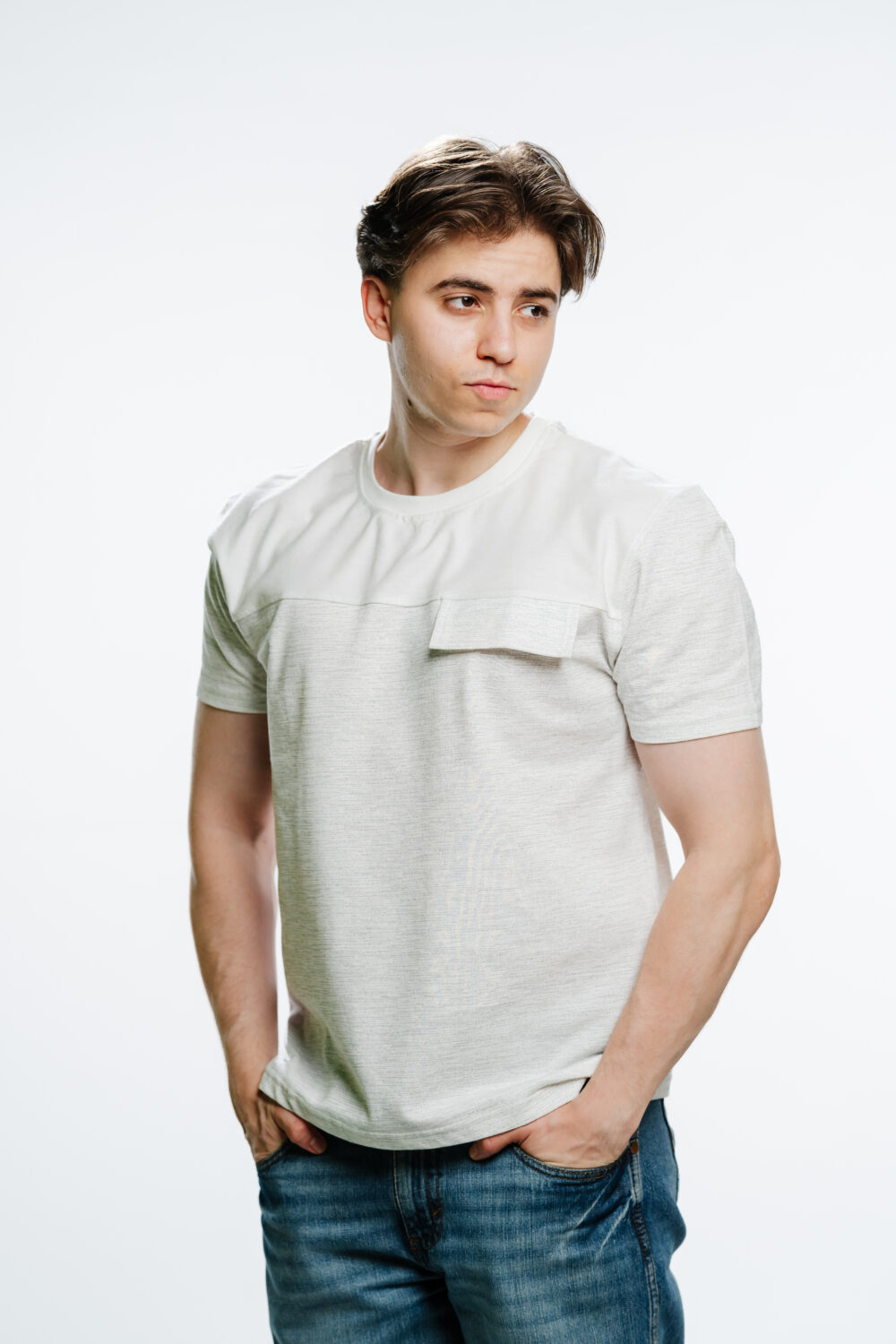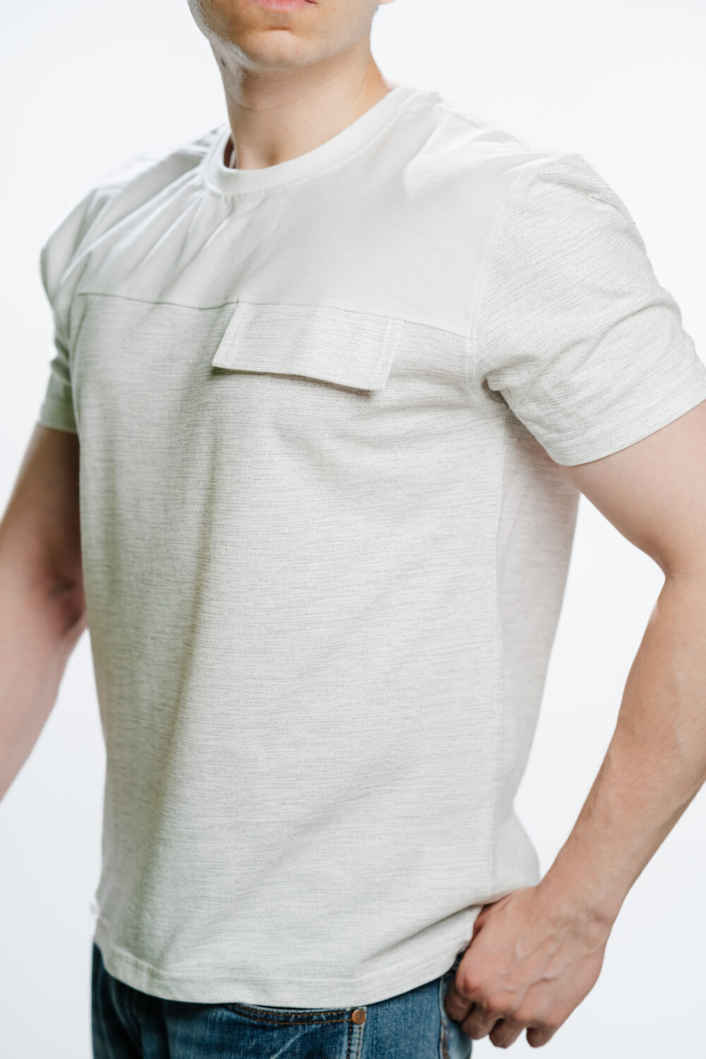 تيشيرت بيزك مطعم بقلاب على الصدر