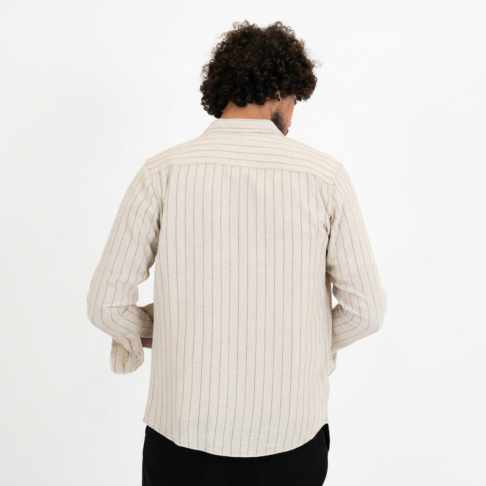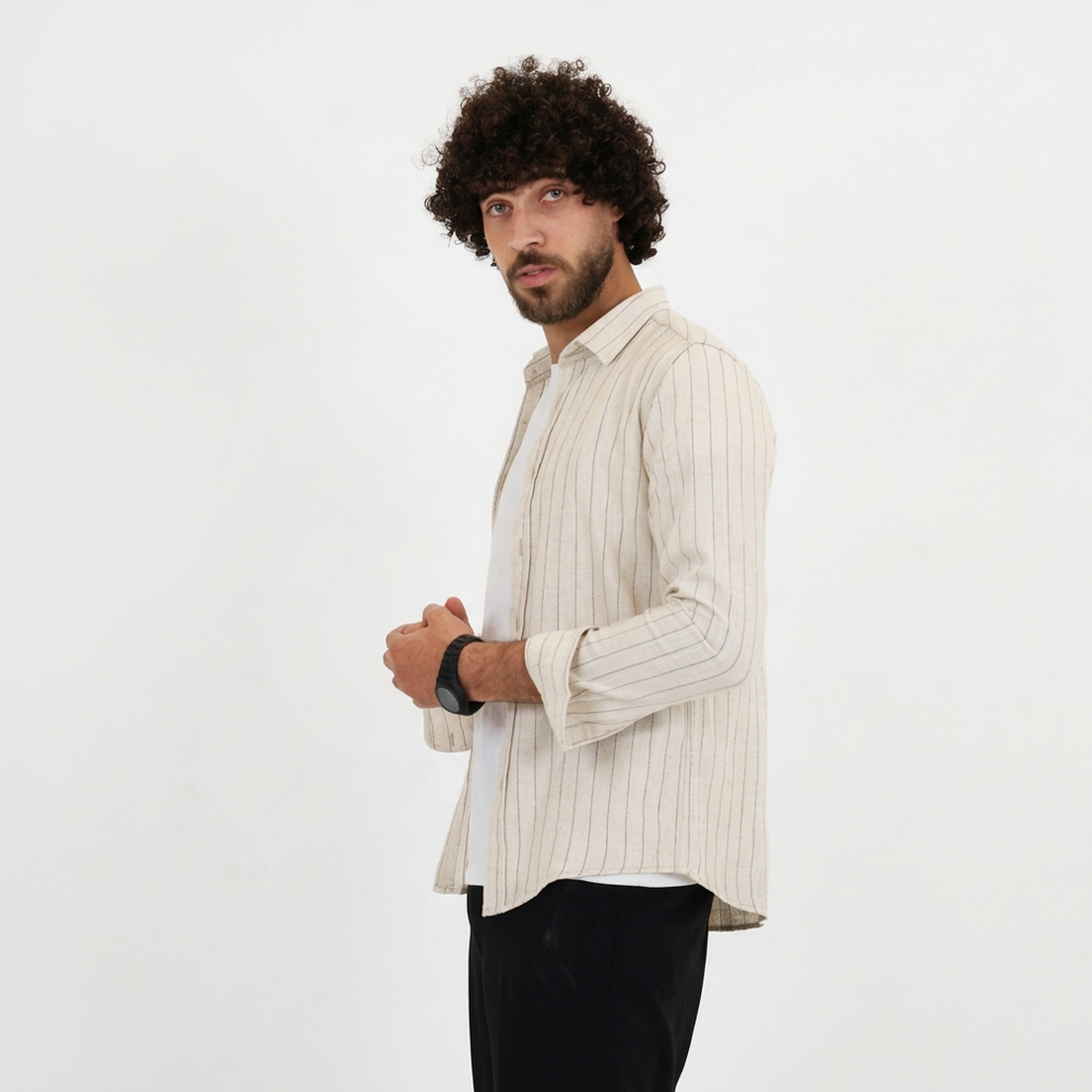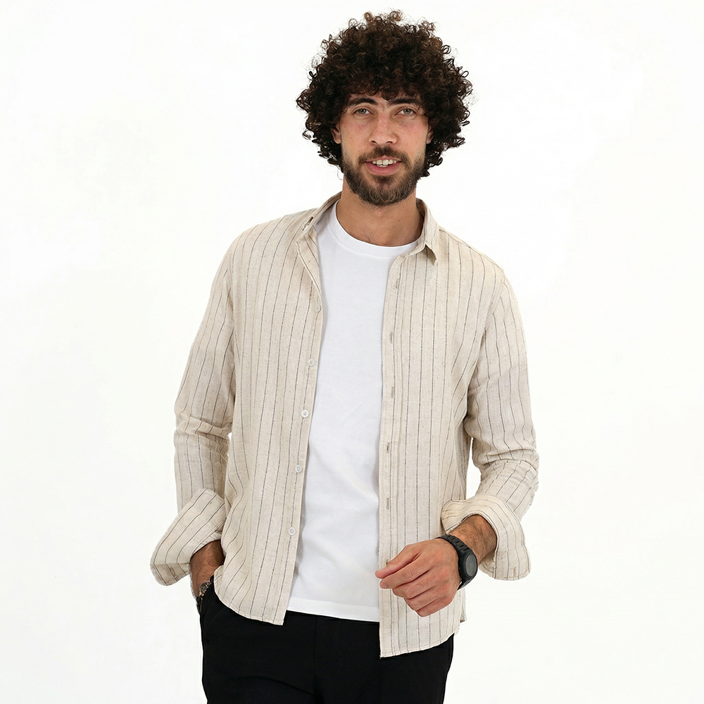 قميص رجالي بخط رفيع كم خامة قطن مريحة
