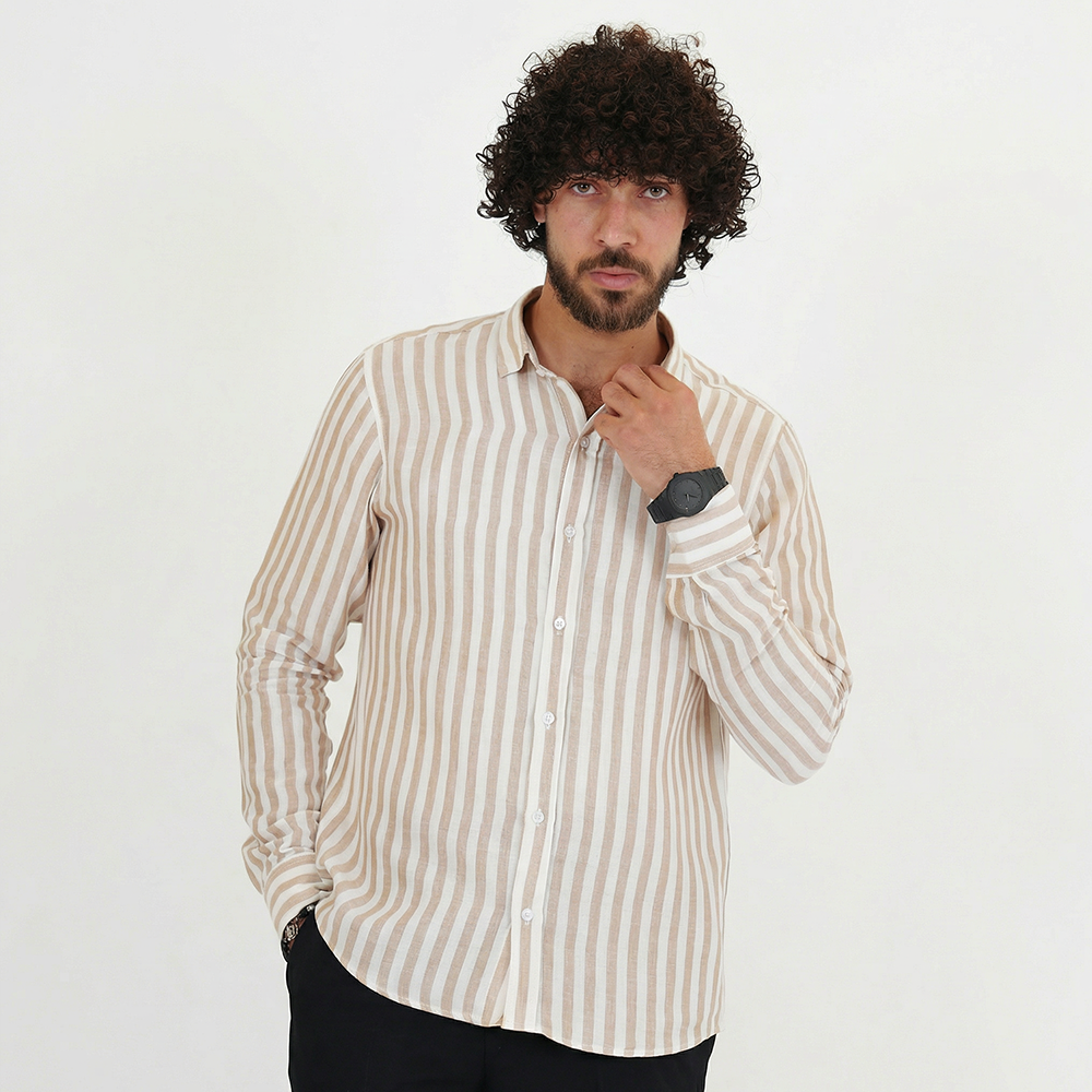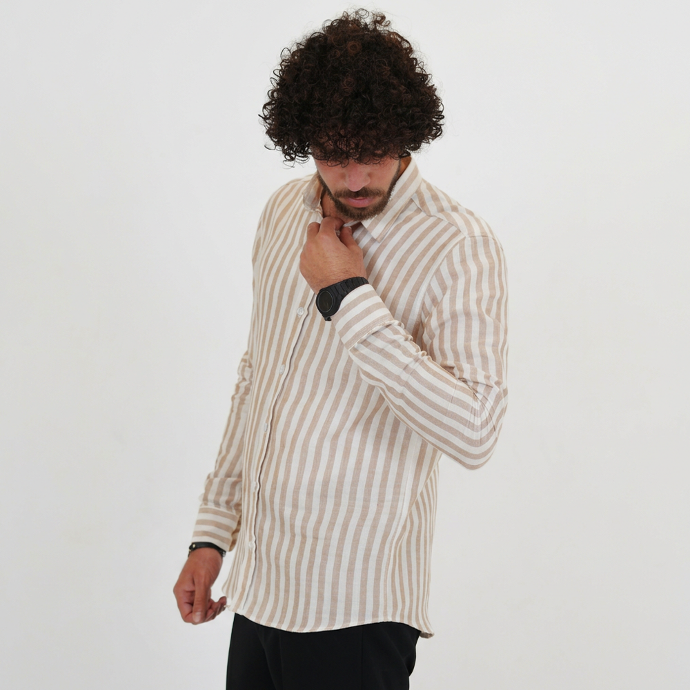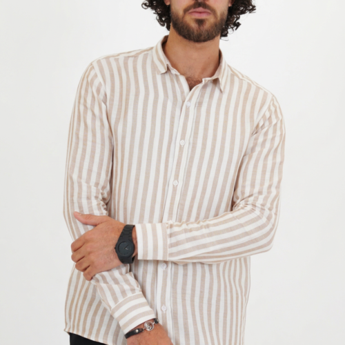 قميص رجالي شبابي كاجوال خفيف خامة قطن مقلم