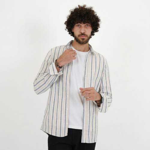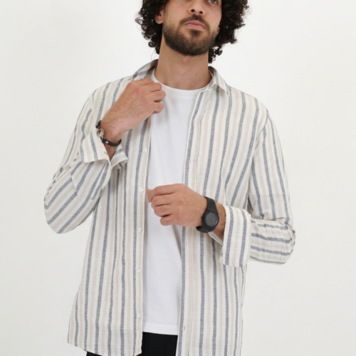 قميص رجالي قطن شبابي مقلم