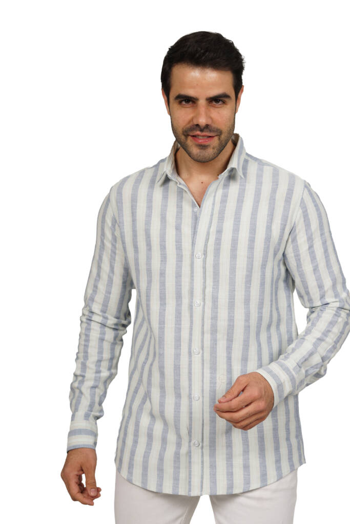 قميص رجالي مقلم قطن خامة ناعمة مريح