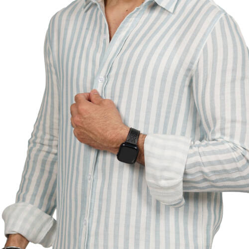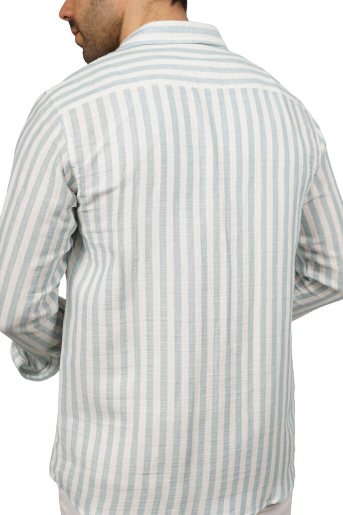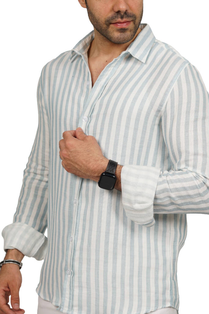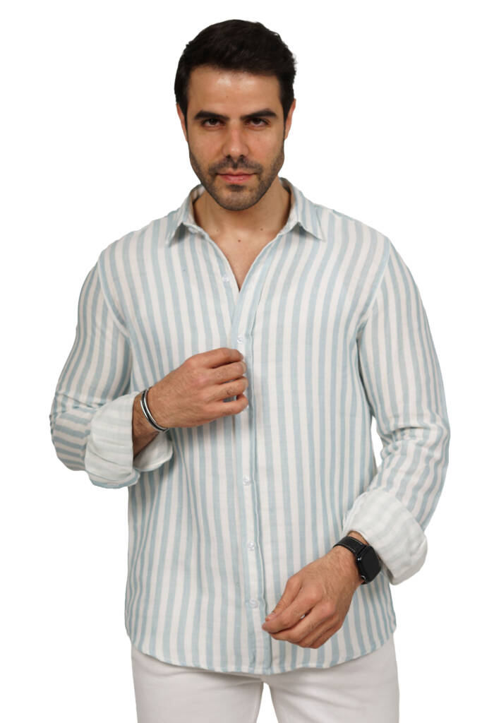 قميص رجالي مقلم بكم خامة خفيفة قطن مريح