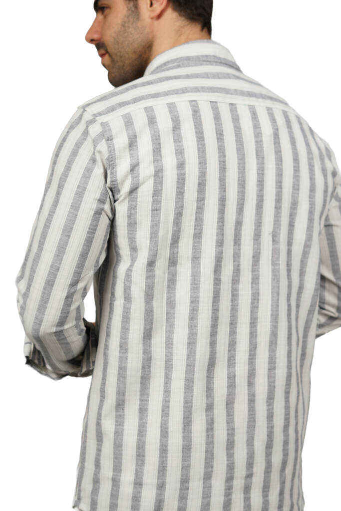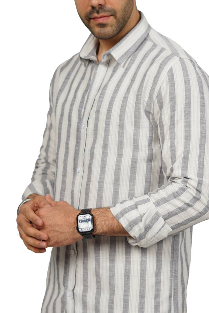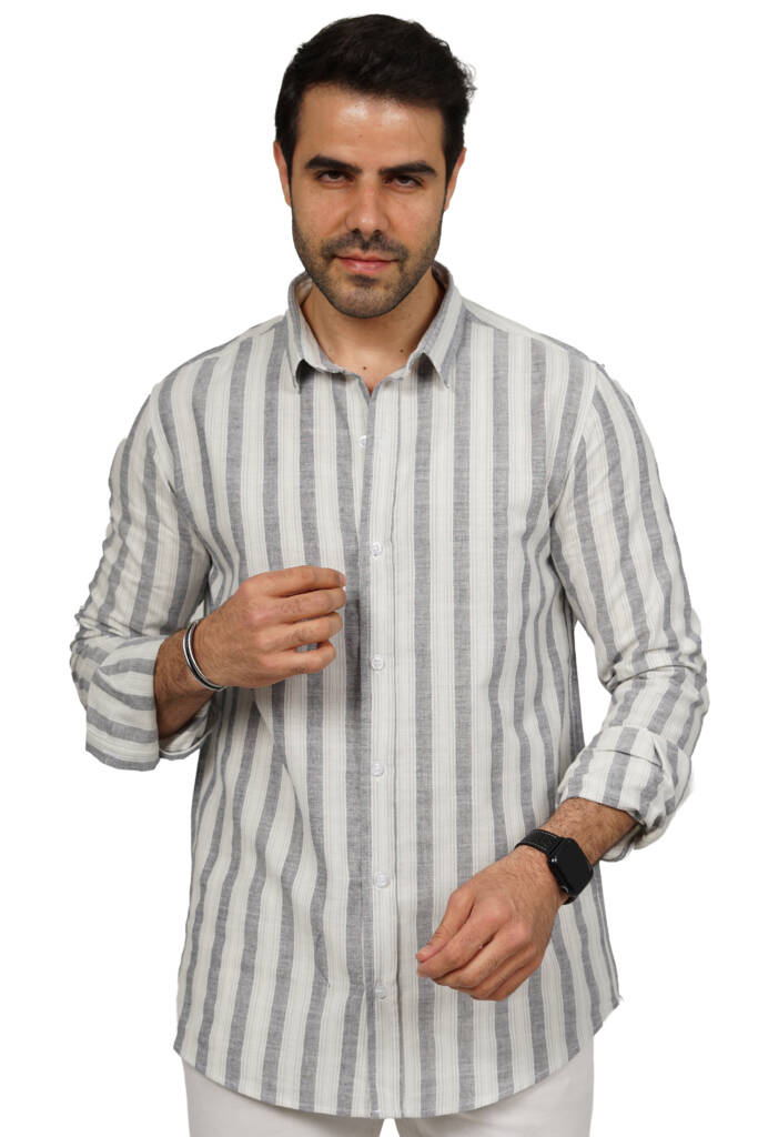 قميص رجالي قطن مقلم بكم خامة صيفي قطن مريحة