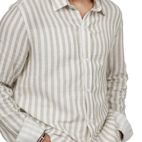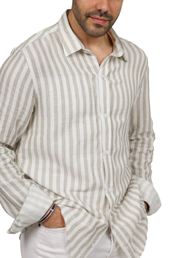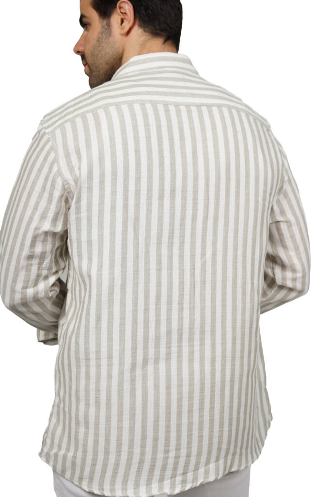 قميص رجالي قطن مقلم خفيف خامة ناعمة صيفي