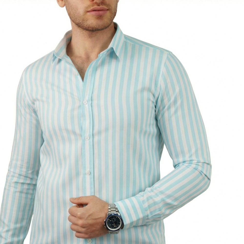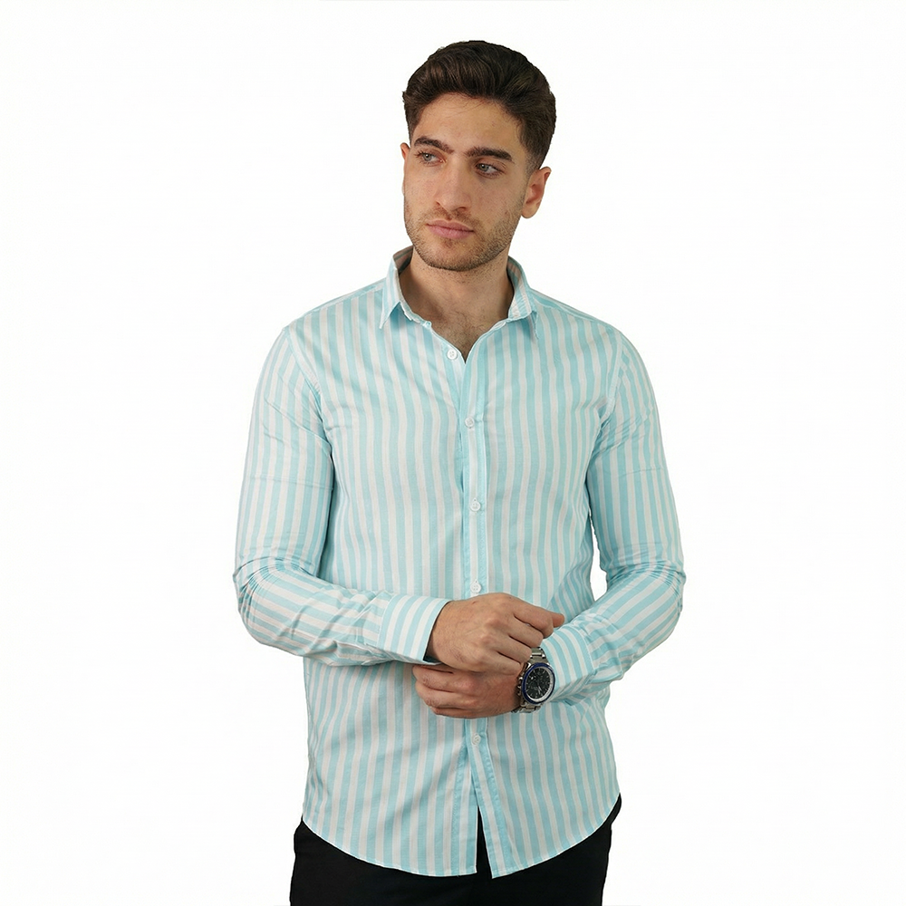 قميص رجالي مقلم خامة صيفية قطن كاجوال
