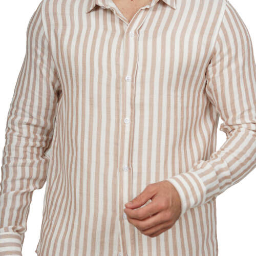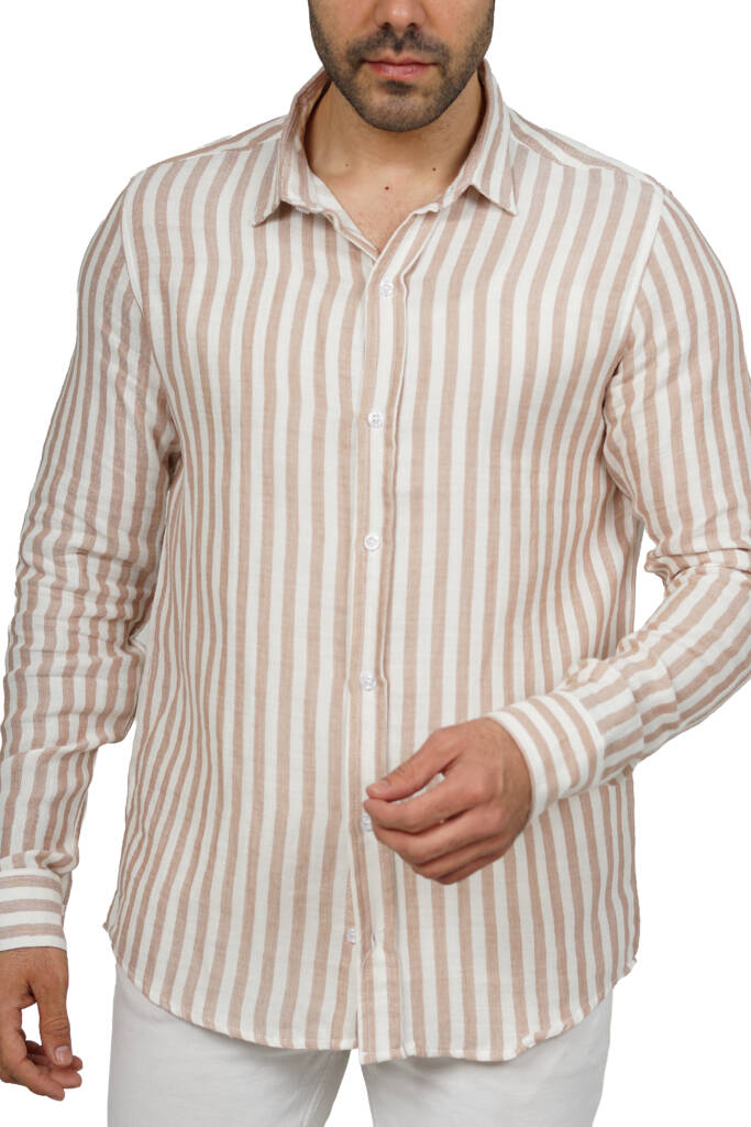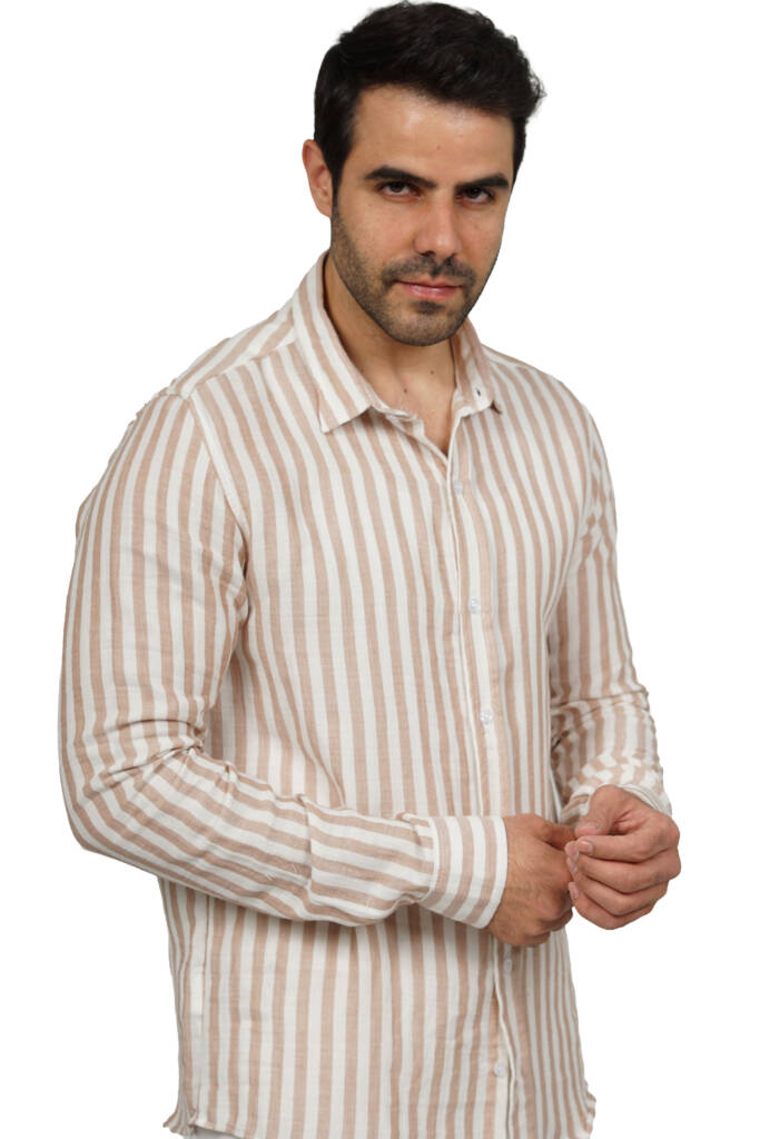 قميص رجالي مقلم قطن خامة خفيفة مريح صيفي
